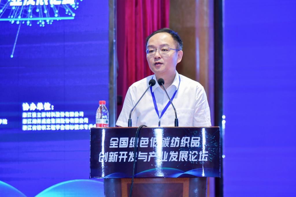 行业专家报告环节中,景慎全,苏州大学纺织与服装工程学院院长张克勤,浙江省现代纺织技术创新中心副主任、浙江理工大学纺织学院教授戚栋明分别作主题报告。