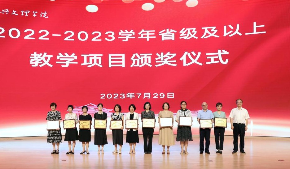 黄坚为2022-2023学年获批省级及以上教学项目的负责人刘学红、葛建荣、金欣、孙一勤、潘一楠、冉娜、赵伟英、陈三妹、洪涛、陈佳玉、叶知秋颁发荣誉奖牌。
