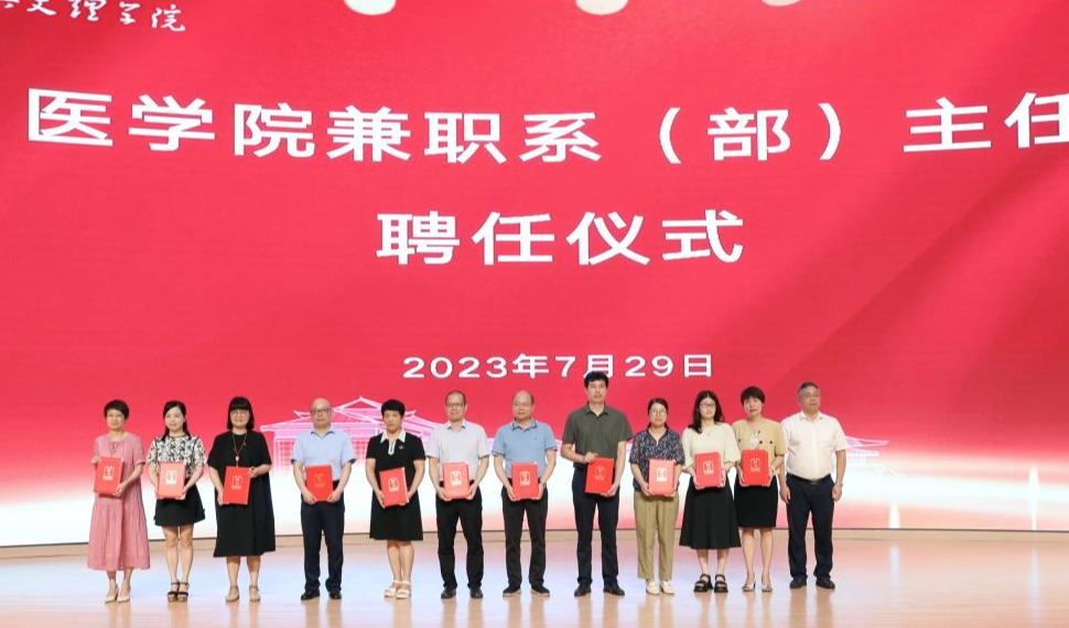 柳国庆为兼职系主任代表校附属医院陈辉英、校附属第一医院洪涛、校附属第二医院童海江、校附属妇幼保健院袁华、校附属中心医院盛燕红、校附属上虞医院连妙芬、校附属嵊州医院苏浩亮、校附属新昌医院胡少波、校附属诸暨中医医院孟茶卿、诸暨市人民医院郭伟利、医学院附属精神卫生中心凌迎春颁发聘书。