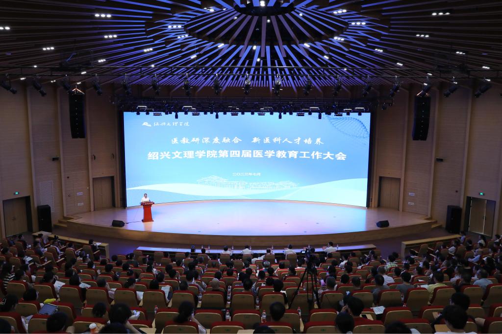 7月29日,学校第四届医学教育工作大会在风则江大讲堂举行。学校校长赵阳,绍兴市卫健委党委书记、主任王宏达,副校长柳国庆、黄坚,校党委委员、医学院院长郭航远,校附属第一医院院长蔡斌、校附属医院党委书记夏瑞明、校附属医院执行院长方兴亮、校附属中心医院党委副书记(主持工作)屠传建、校附属上虞医院党委书记龚月江、校附属嵊州医院院长杨松斌、校附属新昌医院党委书记姚灿珍、校附属诸暨中医医院院长戚坚永、诸暨市人民医院院长周岳松、绍兴市疾病预防控制中心党委书记、主任徐来潮,绍兴市继续医学教育和医学学术交流管理中心主任孙琴芳、绍兴市护理学会副理事长兼秘书长张园芳等出席大会。