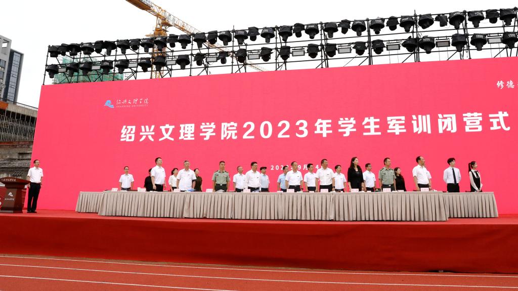 9月14日上午,我校在南山校区田径场举行2023年学生军训闭营仪式。绍兴军分区政治工作处上校主任金论川,越城区人武部中校副部长边建刚,校党委书记汪俊昌,校长赵阳,校领导沈赤、张宏、柳国庆、柯羽、陈均土,校军训领导小组全体成员,全体承训教官、参训学生参加闭营式。校党委副书记张宏主持闭营式。