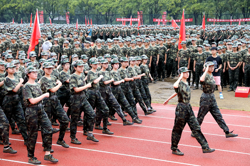 77个连队进行了精彩的分列式表演,参训学员精神饱满、迈着整齐统一的步伐集中展示了10天的训练成果。