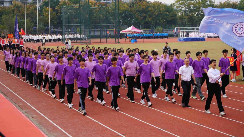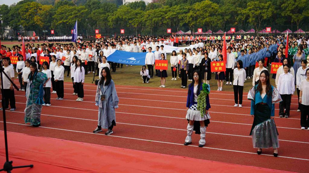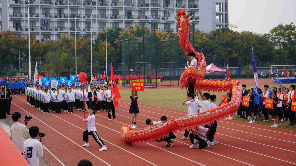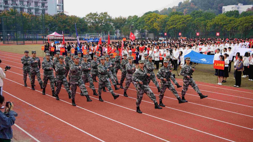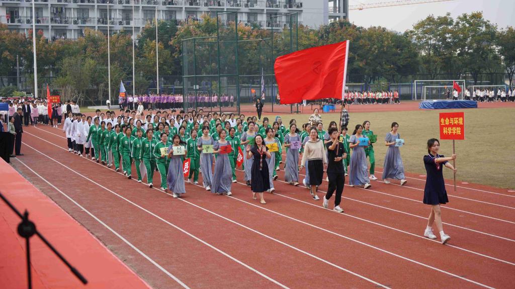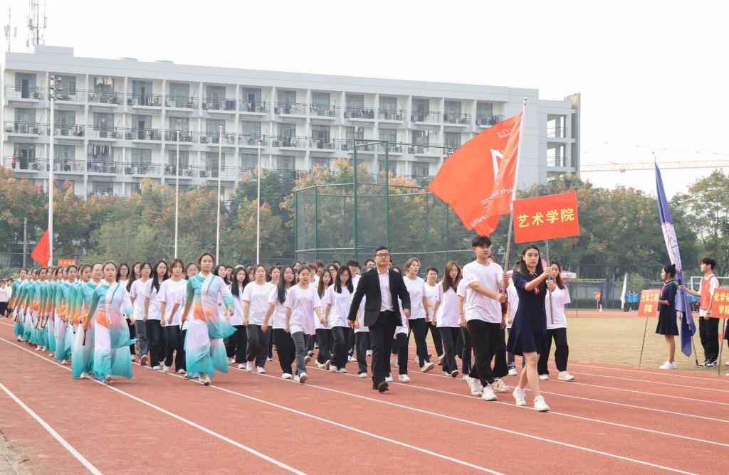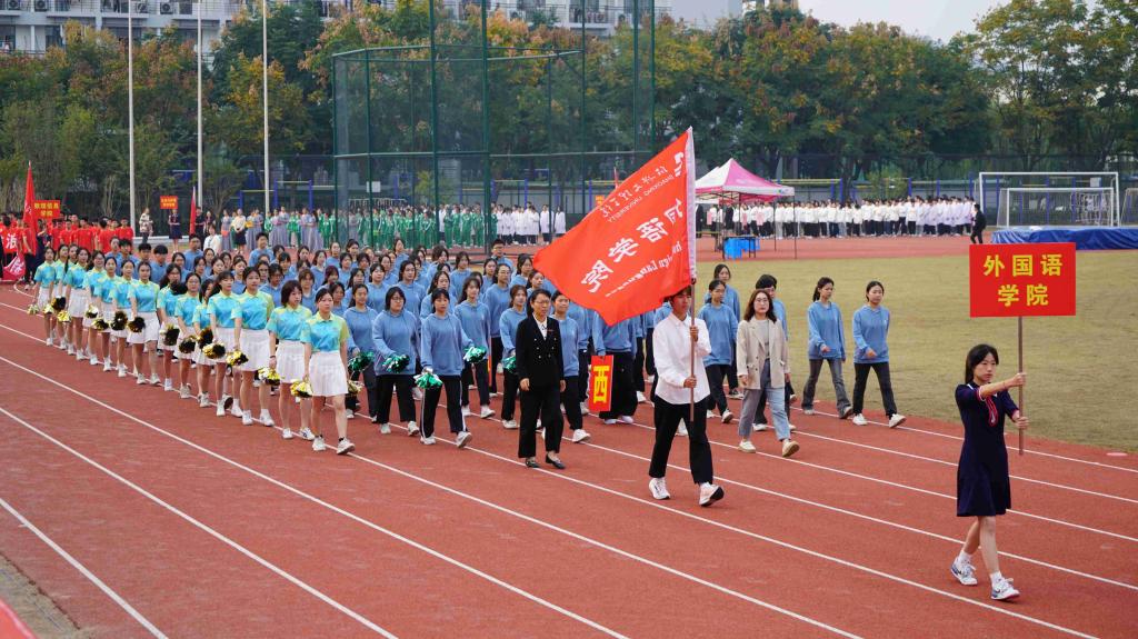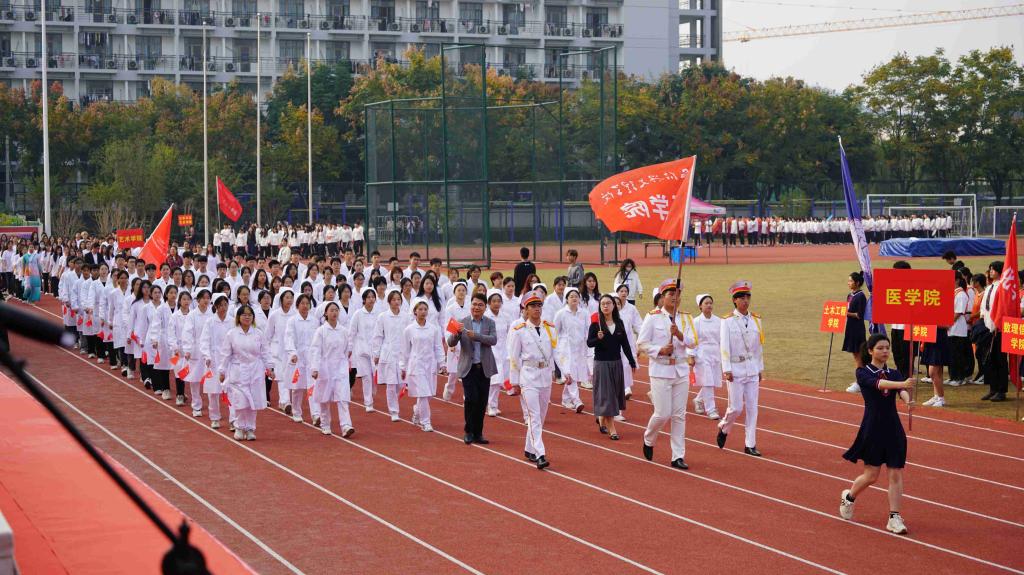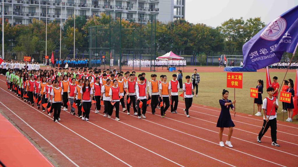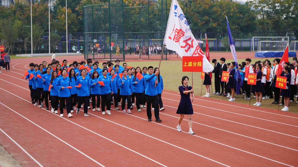 国旗、校旗、运动会会旗方阵,教职工代表方阵,各二级学院运动员代表方阵,退伍士兵方阵,少数民族同学方阵,优秀志愿者方阵,体育教育专业学生方阵等依次入场,各方阵运动员们身着统一服装、迈着坚定昂扬的步伐,彰显出自信与活力。本届运动会有25支运动队、675余名运动健儿参加角逐,将产生男、女共计53个运动项目的金牌。