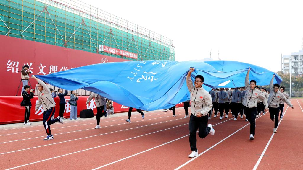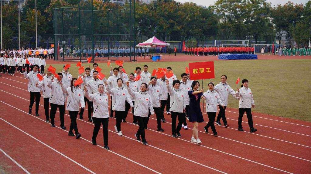 赵阳致开幕词,他代表学校对本届运动会开幕表示祝贺,对在杭州第十九届亚运会中绽放了“卓越”风采的老师和“小青荷”志愿者表示肯定和感谢。他指出,学校一直高度重视体育工作,着力以体育竞赛为引领,积极打造文理特色体育文化,在广大师生的努力下,我校的体育事业实现了长足的发展,取得了令人欣喜的成绩。他希望全校师生以亚运健儿为榜样,将“永远向前”的精神根植于心、实践于行,为推进我校体育事业发展做出新的贡献。