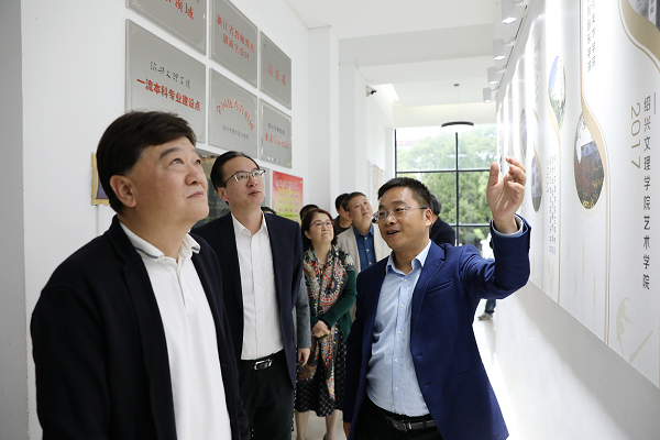 韩新安一行先后参观了我校风则江校区、艺术学院月明音乐楼,随行过程中,张宏、艺术学院负责人分别就我校办学情况、艺术学科建设等作了介绍。随后,韩新安一行在月明音乐厅观看了“绍兴爱乐教师合唱团与艺术学院师生汇报音乐会”。