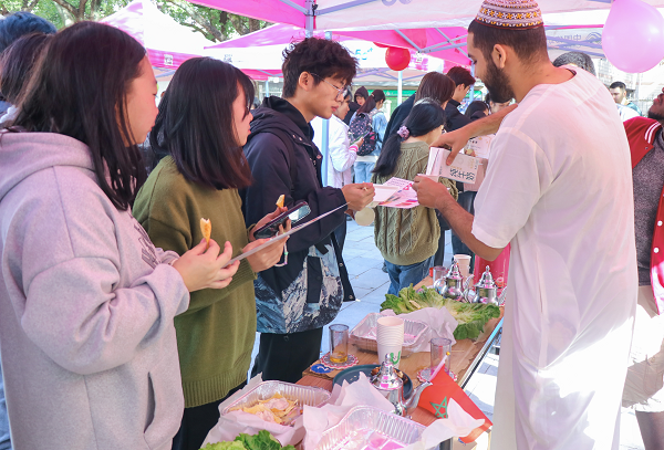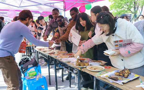 本届国际文化节由国际合作处、国际教育学院联合举办,以“各美其美,美美与共——共建‘一带一路’倡议十周年”为主题,留学生们设置10多个展位,通过分享美食、歌舞、服饰、手工艺品的形式展示自己家乡的文化,师生们游园于展位间,感受多元文化的魅力。此外,活动还专门设立了中华文化专区展位,现场展示了汉服、书画等中华传统文化。在琳琅满目的展位间,师生们品尝美食,参与集章活动,领略各国风情。