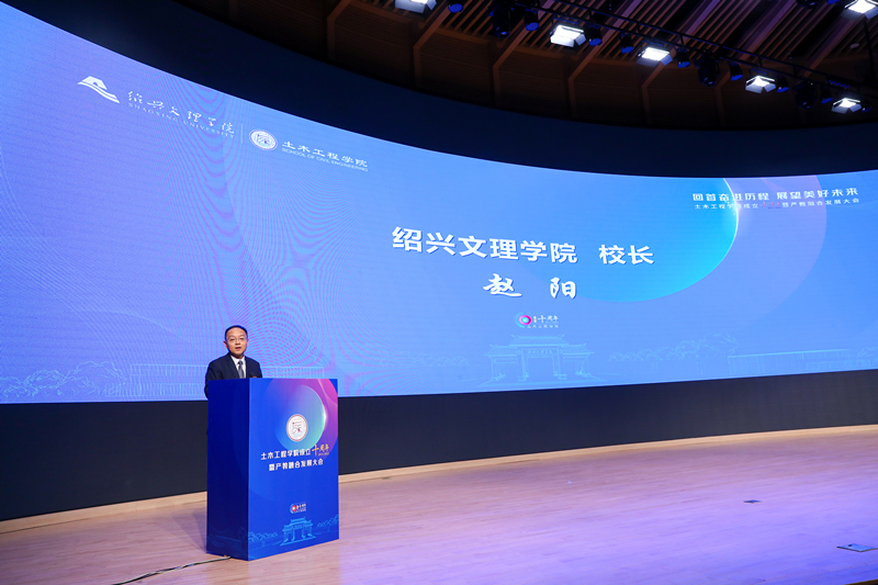 12月23日,土木工程学院成立十周年暨产教融合发展大会在风则江大讲堂报告厅召开。中国工程院院士、浙江省岩石力学与地质灾害重点实验室主任杜时贵,校党委书记汪俊昌、校长赵阳、副校长陈均土,绍兴市交通运输局副局长郭仲芳,越城区人民政府副区长谷丰出席大会。学校相关部门负责人、土木工程学院产教融合合作单位领导、土木工程学院校友代表、土木工程学院全体教师及部分学生代表参加大会。