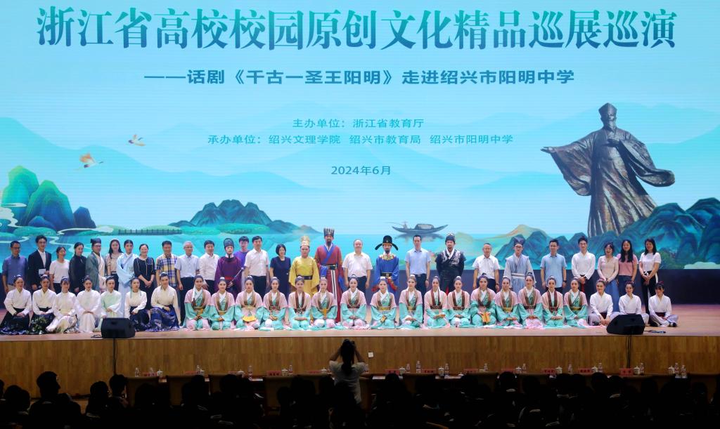 6月11日晚,由我校鲁迅人文学院阳明剧社自编自导自演的原创历史话剧《千古一圣王阳明之吾心光明》、情景朗诵《少年阳明》《阳明悟道》和舞蹈《咏良知》等节目在阳明中学体育馆内上演,1200余名师生沉浸其中,近距离感受阳明文化的独特魅力,探寻学校美育和思政教育融合贯通、双向奔赴的“相遇”之美。