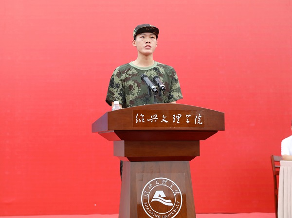 军训团教官代表袁建龙发言,对本次军训工作做出保证。军训学员刘锦贺代表全体参训学员作出郑重承诺。