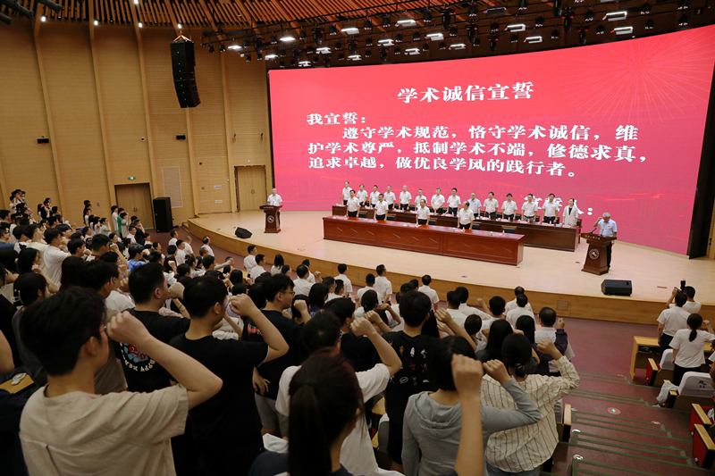 典礼举行了研究生学术诚信宣誓,国家MEMS 973项目首席科学家、数理信息学院王跃林教授领誓。