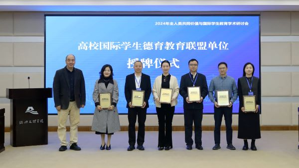 开幕式上,还举行了高校国际学生德育教育联盟授牌仪式。高校国际学生德育教育联盟是2023年5月由我校发起,北京理工大学、中央民族大学等12所高校国际教育职能部门共同倡议成立的国际生德育教育工作交流合作联盟。