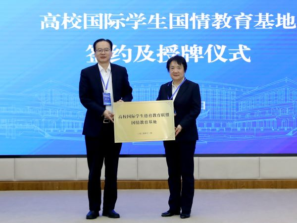 绍兴市文旅集团、黄酒小镇管委会分别与高校国际学生德育教育联盟签约,成为高校国际学生国情教育基地。学校党委副书记张宏和喀什大学副校长罗浩波代表联盟单位为绍兴市文旅集团、黄酒小镇管委会授牌。