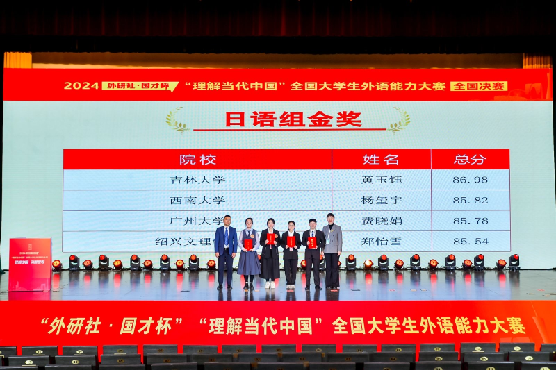 12月9日,2024“外研社·国才杯”“理解当代中国”全国大学生外语能力大赛国赛落幕。经过校赛、省赛、国赛初赛的层层选拔,我校作为浙江省唯一一所被选拔出两名选手的院校代表出征北京。在全国总决赛中,日语专业郑怡雪、程丝雨披荆斩棘、勇创佳绩,分别斩获金奖、银奖,取得了历史性突破。