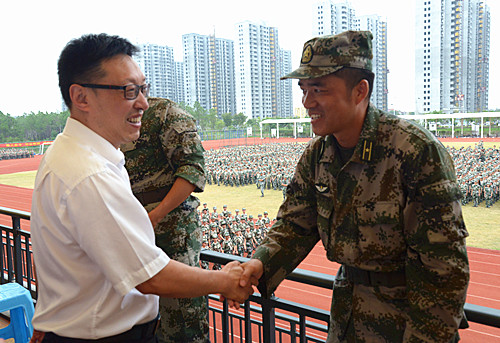 汪俊昌书记看望慰问元培学院军训连队、督查文明城市复评迎检工作