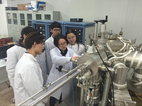 吴海飞老师指导学生调试仪器。2016年该实验小组发表论文2篇,申请专利1项。