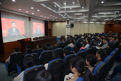 行政楼各会议室、铁城一楼会议室、南山财贞楼二楼报告厅、马克思主义学院会议室……10月18日上午,我校师生聚集在一起收看中国共产党第十九次全国代表大会开幕会,聆听习近平总书记代表十八届中央委员会向大会作的报告。