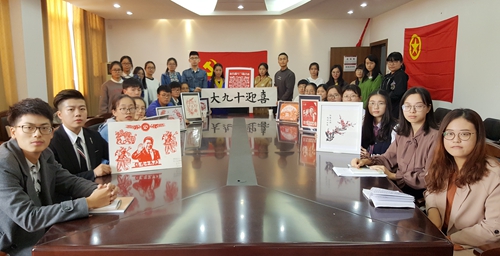 学生用书法、剪纸、刺绣等作品向党的十九大献礼