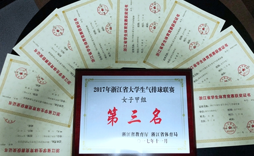 在11月12日结束的2017年浙江省大学生气排球联赛中,我校气排球队分别荣获甲组男子第一名、女子第三名。