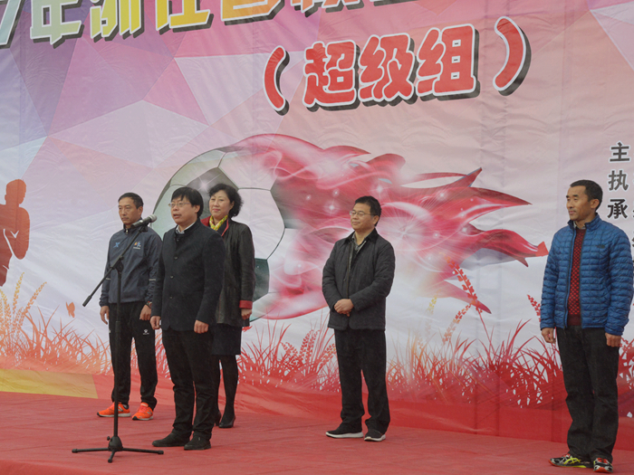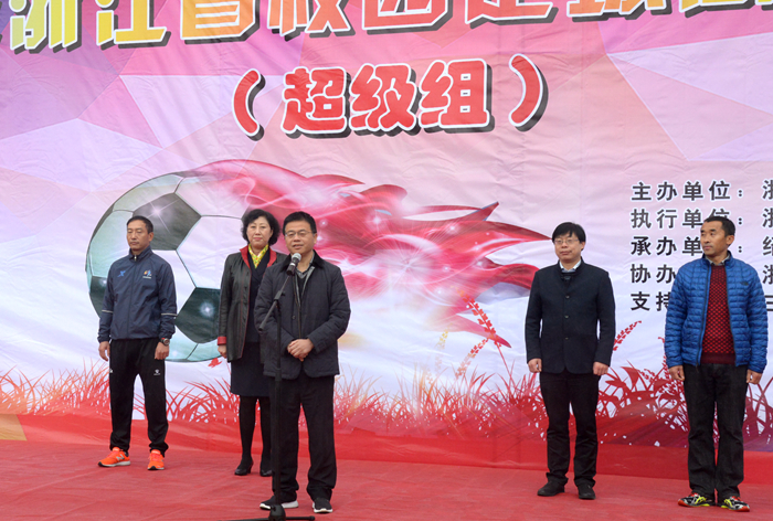 李建章宣布2017年浙江省校园足球高校超级组联赛开幕。运动员、裁判员代表分别向大会宣誓。
