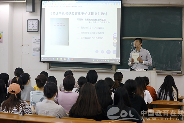 自9月开学以来,全校上下掀起了学习贯彻习近平总书记关于教育重要论述的热潮。让《讲义》“进教材、进课堂、进头脑”,让教师们把开学“思政第一课”上得更有“底气”,学校下足了功夫。马克思主义学院多次组织思政课教师在暑期进行集体备课,并邀请北京师范大学博士生导师冯刚教授作专题讲座;领导班子与思政课教师进行实时研讨,对课程教学设计、课程内容衔接等进行研判,使课程设计与《讲义》结合得更加紧密;教研室通过反复修改,多次“打磨”,最终形成了制作精良、内容优化、案例鲜活的教学讲义与课件。