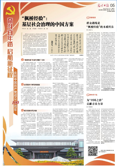 【悟思想】我校师生在《光明日报》“奋斗百年路 启航新征程”大型主题报道中为“枫桥经验”积极发声