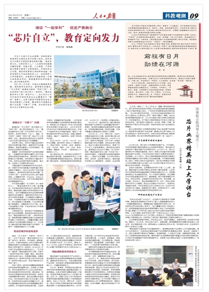 4月5日,《人民日报》(海外版)“科教观潮” 版以《探索校企协同育人模式——芯片业界精英站上大学讲台》为题,专题报道我校积极探索校企协同育人模式。全文如下: