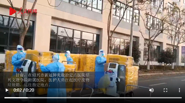 记者了解到,运送这些医疗废物箱的,是该院的医务人员,其中不乏一些专家教授。自12月7日绍兴市突发新冠肺炎疫情以来,全市已累计报告确诊病例387例,均收治于该院。面对保洁人员紧缺的现状,医务人员主动承担起医疗废物处置、卫生保洁、消毒消杀等工作。