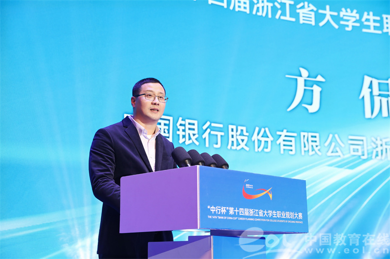 方侃在致辞中对大赛的圆满成功表示热烈祝贺。他表示中国银行浙江省分行始终铭记人才是第一资源,把助力培养有为青年作为国有大行的应尽职责,积极探索教育领域金融服务模式,助力各教育单位各高校事业蓬勃发展。本次大赛充分发挥以赛促就的积极作用,广泛发动行业企业和高校参与赛事活动,全力促进高校毕业生高质量充分就业。祝愿新时代的学子志存高远,脚踏实地,勇担时代使命,把个人的理想追求融入党和国家事业之中。