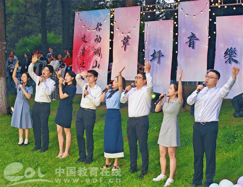 活动期间,马海忠(学工部)、陈佳艺(校团委)、陈盈盈(医学院)、侯端阳(鲁迅人文学院)、徐嘉穗(教师教育学院)、陈允迪(人文社会科学处)、汤佳雯(商学院)、刘成云(学工部)等八位老师与全体学生互动合唱《风则江畔》。