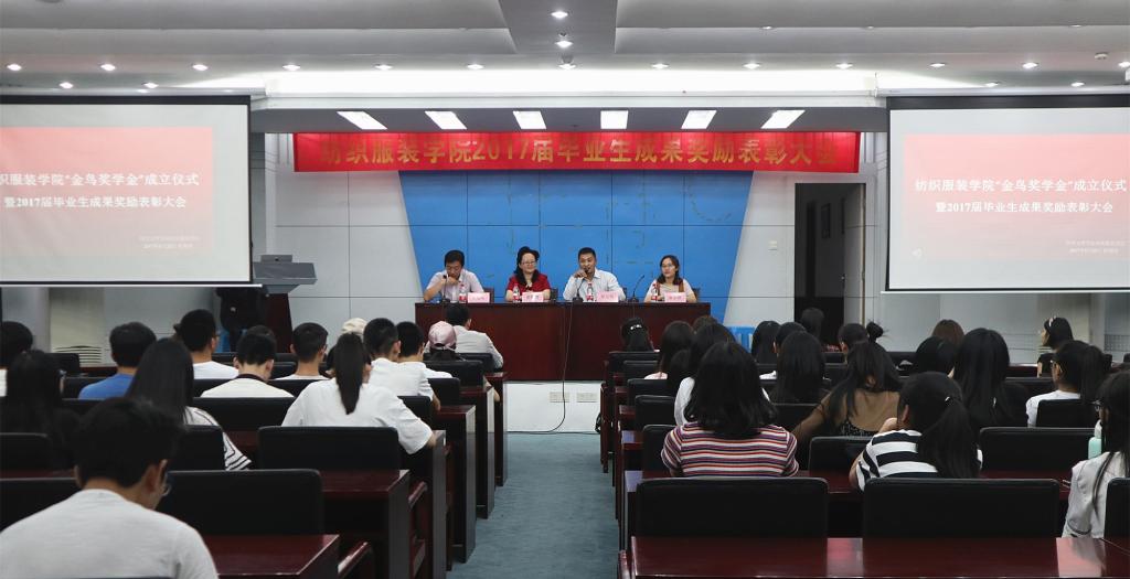 毕业生成果奖励表彰大会主要表彰在考研、学科竞赛、科研项目、论文专利、志愿服务等方面取得突出成绩的毕业生,是纺织服装学院在每年毕业季例行举办的重要活动,“金鸟奖学金”的设立赋予表彰大会新的意义,即通过塑造典型,表彰先进,鼓励低年级学生们继续传承创新,笃行致远,向身边的榜样看齐,不断超越,多出成果。
