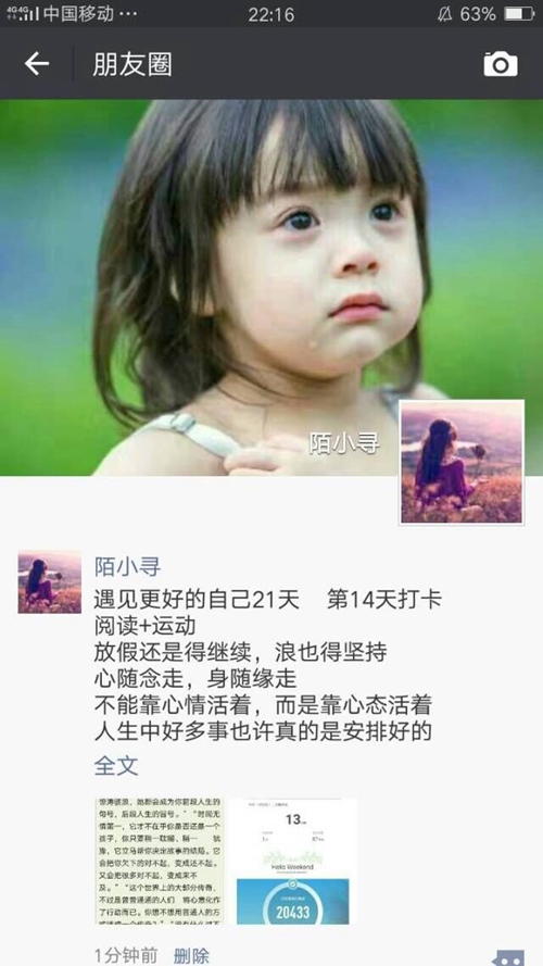 这是一次自我挑战赛,比赛设运动组、阅读组、光盘组、内务组、艺术训练组、早餐组、早睡组、早期组等。为了保障挑战者能顺利完成比赛,每组设有一名组长,挑战者需要每天发朋友圈截图完成打卡,组长会给予监督和鼓励。挑战者发朋友圈一方面是监督自身,另一方面也为身边的朋友传递了正能量。很多同学表示,这样的挑战赛很有意义,虽然比赛已经结束,但是会一直坚持下去。学前141班的闫孜颖在最后一天打卡时说:“习惯了每天早起整理,空余时间看点书,晚饭后约上好友锻炼,希望一切都可以坚持下去”;科教162班的华佳清则说:“没想到自己也是坚持下来了,有些许的感动,21天是良好习惯的养成,我想我要坚持下去,能够让自己变得更加优秀。”数学161班的宋莹然在坚持21天的阅读与练字后感慨:“耐心与睿智并存,奋斗奋斗,同志仍需努力。”