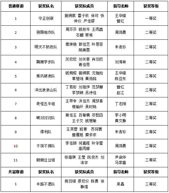 本届竞赛包含普通赛道及共富赛道。普通赛道共有74所高校、本科组409队参赛,初赛筛选出32所本科院校93支队伍入围决赛。我校共派出12支队伍参赛,4支队伍成功进入决赛,最终获一等奖1组、二等奖3组、三等奖7组。共富赛道本科组58队参赛,我校共派出2支队伍参赛,最终获三等奖1组。