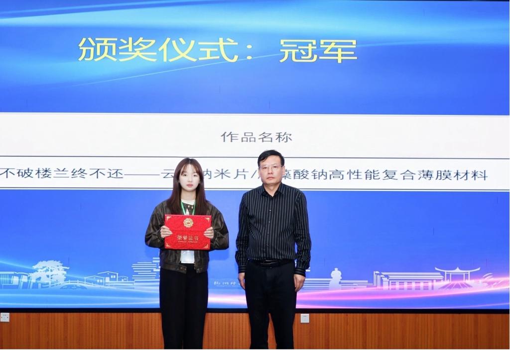 其中,由22级研究生吴媛媛等负责的作品《不破楼兰终不还——云母纳米片/海藻酸钠高性能复合薄膜材料》,获得了第一届“福斯特杯”浙江省大学生微结构摄影及图片创作大赛研究生组的冠军;由22级研究生吴媛媛等负责的《CMC增强云母/壳聚糖复合薄膜负载钯催化剂的制备及性能研究》项目、21级研究生程蕊等负责的《TiO2-WO3固体酸催化剂体系的构建及其催化降解VOCs的研究》获研究生组二等奖,21级研究生刘永鸿等负责的《高分子纺丝纤维负载钯材料》获研究生组三等奖;由21级本科生李若彤等负责的《高电流密度下超稳定电解水产氢的钌掺杂镍基电极》项目获本科生组三等奖。