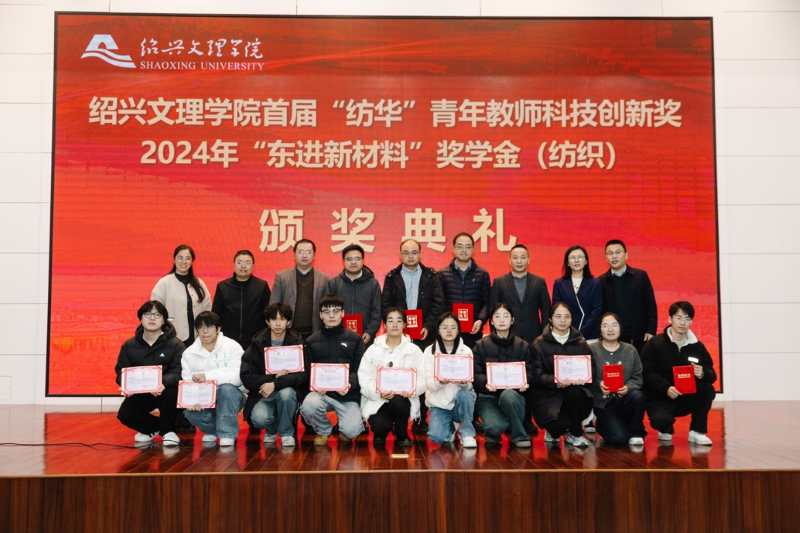 12月11日下午,纺织科学与工程学院首届“纺华”青年教师科技创新奖与2024年“东进新材料”奖学金颁奖典礼在铁城科教馆报告厅举行。副校长赵浪平,浙江东进新材料有限公司副总经理谢国炎,中国科学院上海高等研究院研究员林金友,学院党委书记王东亮、副院长董爱学,学工部副部长钟央文,获奖师生及其他师生代表200余人参加颁奖典礼。学院党委副书记金恩琪主持典礼。