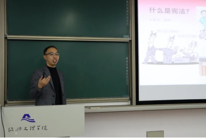 法律系徐肖东老师以《宪法基本知识解读》为主题,为学生讲解了我国宪法的起源、发展历程以及“国家宪法日”的由来,并结合国家战略和社会民情,通过一个个现实生活中的鲜活案例诠释了我国宪法精神和公民自身对于宪法的运用。
