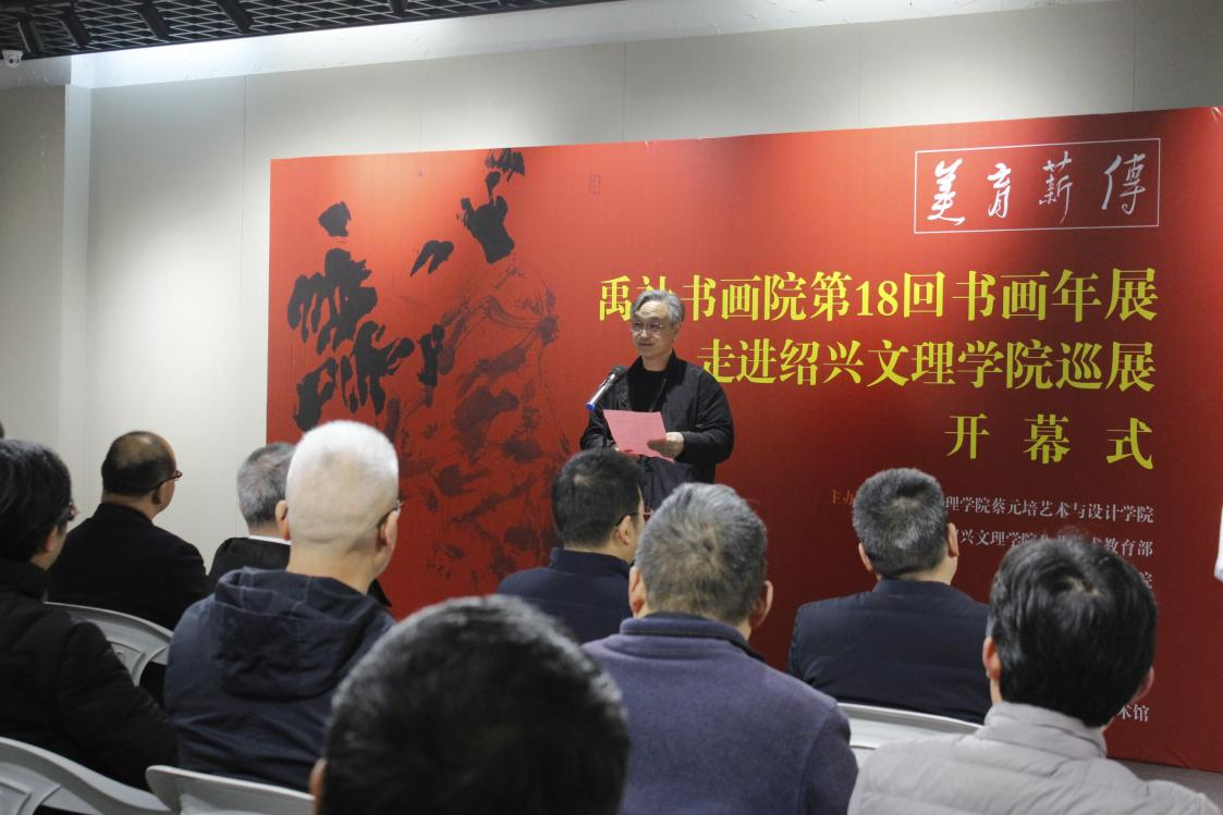绍兴市老领导、市咨询委副主任、禹社书画院名誉院长车晓端,禹社书画院秘书长张坚秋,绍兴市文联副主席赵飞霞,绍兴市教育局党委副书记、副局长丁初效,绍兴市文广局党委副书记、副局长杨坚祥,绍兴文旅集团副总经理张军,蔡元培艺术与设计学院院长童师柳等出席。开幕式由蔡元培艺术与设计学院副院长张继钟主持。