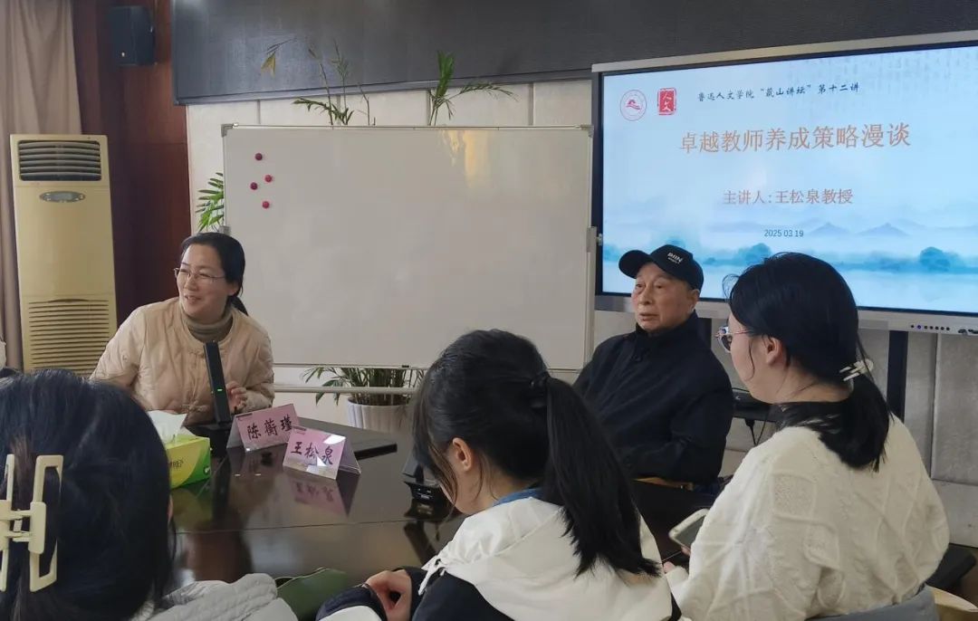 3月19日,鲁迅人文学院在南山校区举行第十二讲“蕺山讲坛”。全国优秀教师、祖楠班顾问王松泉教授应邀作题为“卓越教师养成策略漫谈”的学术报告。报告由鲁迅人文学院副院长陈蘅瑾主持。